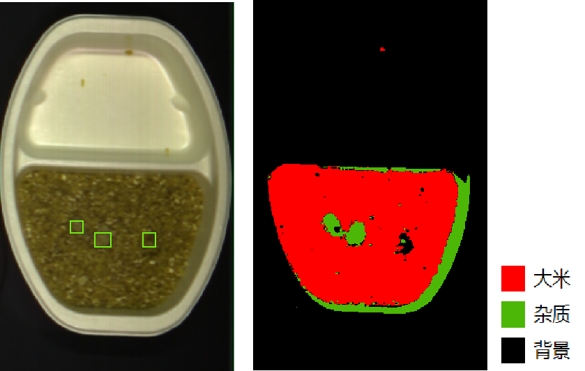 The system demonstrates effective identification of agglomerated foreign matter in rice.